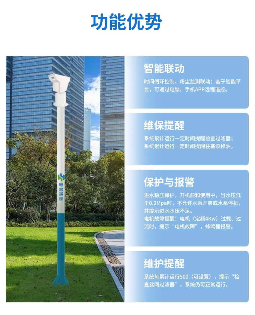 作用:抑制扬尘、灰尘治理、空气净化、喷雾降温等