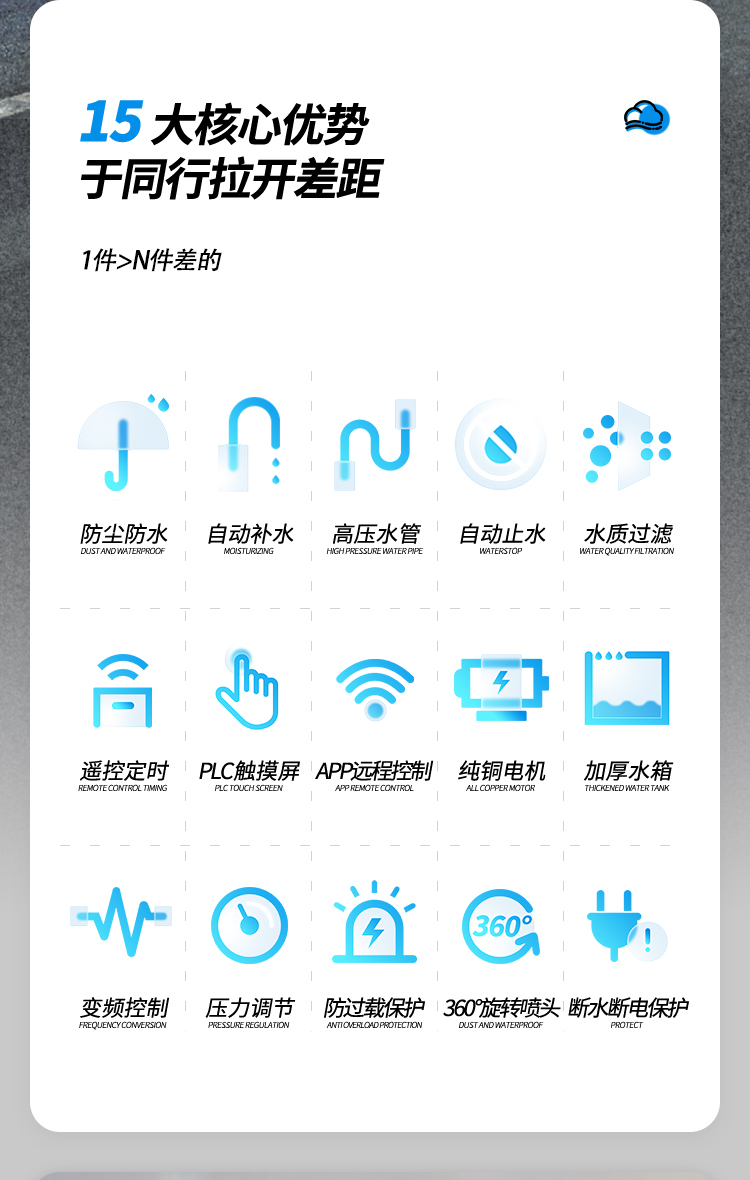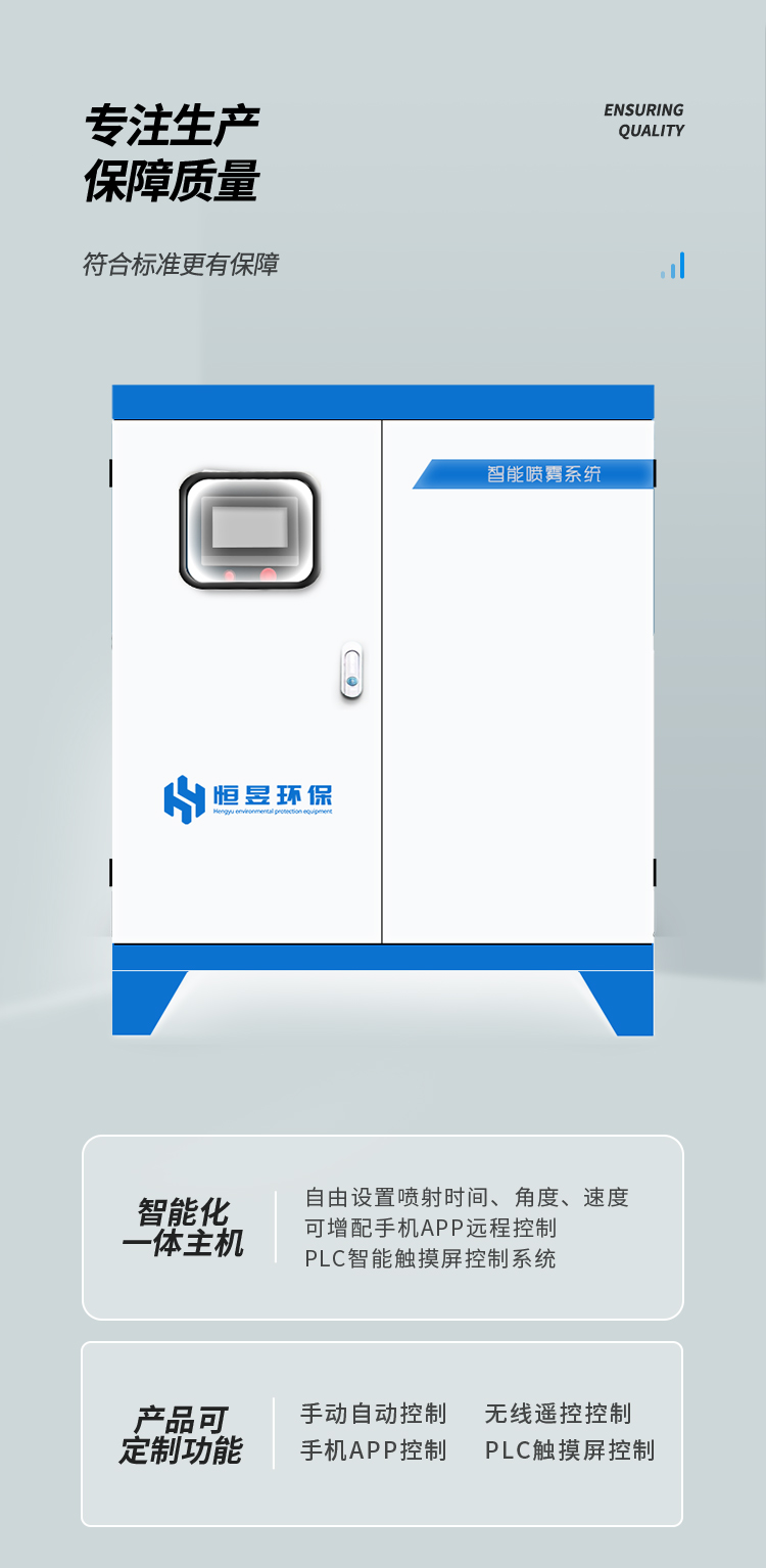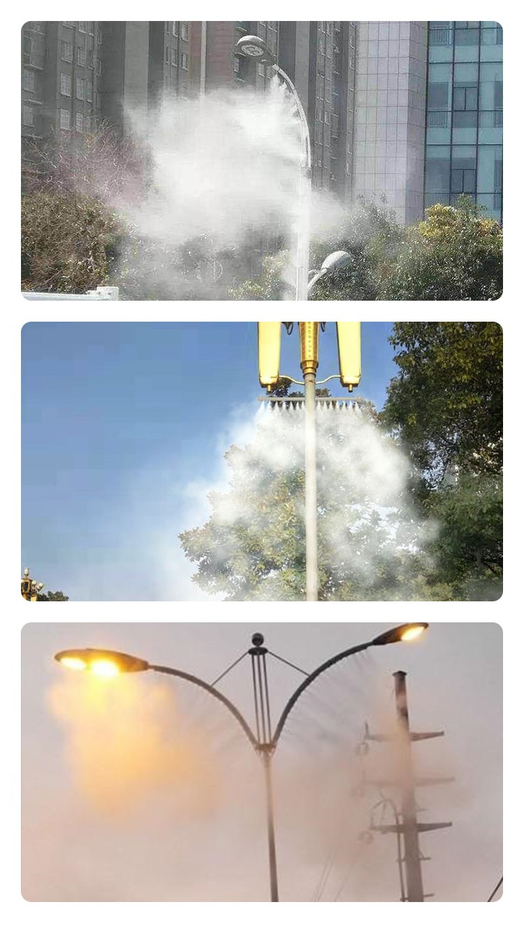 路灯喷雾降尘系统是科技发展进步下的产物,它的智能化管理系统可以实现远程遥控操作,自动感应空气中的粉尘含量,检测到空气中的粉尘浓度超过设定值就会自动开启,低于设定值就会自动关闭。